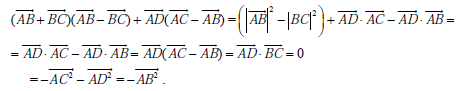 Для того чтобы дать полноценный ответ, был привлечен специалист, который хорошо разбирается требуемой тематике "ЕГЭ (школьный)". Ваш вопрос звучал следующим образом: DABC — правильный тетраэдр. Упростите выражение (АВ + ВС)(АВ - ВС)+AD(АС - АВ).