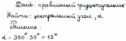 Для того чтобы дать полноценный ответ, был привлечен специалист, который хорошо разбирается требуемой тематике "ЕГЭ (школьный)". Ваш вопрос звучал следующим образом: Найдите центральный угол правильного тридцатиугольника