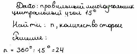 Для того чтобы дать полноценный ответ, был привлечен специалист, который хорошо разбирается требуемой тематике "ЕГЭ (школьный)". Ваш вопрос звучал следующим образом: Центральный угол правильного многоугольника равен 15 Найдите количество сторон многоугольника.