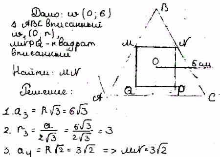 Для того чтобы дать полноценный ответ, был привлечен специалист, который хорошо разбирается требуемой тематике "ЕГЭ (школьный)". Ваш вопрос звучал следующим образом: В окружность радиуса 6 см вписан правильный треугольник, В этот треугольник вписана окружность, а в окружность — квадрат. Найдите сторону квадрата.