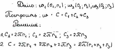 Для того чтобы дать полноценный ответ, был привлечен специалист, который хорошо разбирается требуемой тематике "ЕГЭ (школьный)". Ваш вопрос звучал следующим образом: Постройте окружность, длина которой равна сумме длин трёх данных окружностей