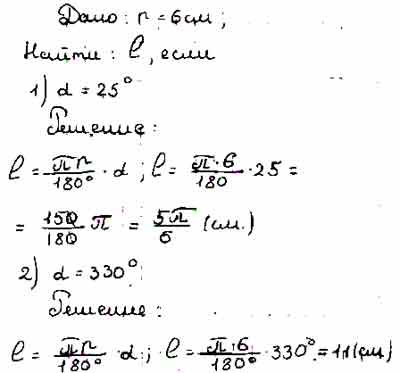 Для того чтобы дать полноценный ответ, был привлечен специалист, который хорошо разбирается требуемой тематике "ЕГЭ (школьный)". Ваш вопрос звучал следующим образом: Радиус окружности равен 6 см. Найдите длину дуги окружности, градусная мера которой равна: 1) 25; 2) 330