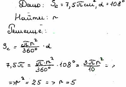 Для того чтобы дать полноценный ответ, был привлечен специалист, который хорошо разбирается требуемой тематике "ЕГЭ (школьный)". Ваш вопрос звучал следующим образом: Найдите радиус круга, если площадь сектора этого круга равна 7,5п см2, а центральный угол, соответствующий этому сектору, — 108