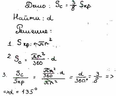 Для того чтобы дать полноценный ответ, был привлечен специалист, который хорошо разбирается требуемой тематике "ЕГЭ (школьный)". Ваш вопрос звучал следующим образом: Площадь сектора составляет 3/8 площади круга. Найдите центральный угол, соответствующий данному сектору.