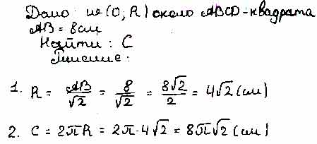 Для того чтобы дать полноценный ответ, был привлечен специалист, который хорошо разбирается требуемой тематике "ЕГЭ (школьный)". Ваш вопрос звучал следующим образом: Найдите длину окружности, описанной около квадрата со стороной 8 см.