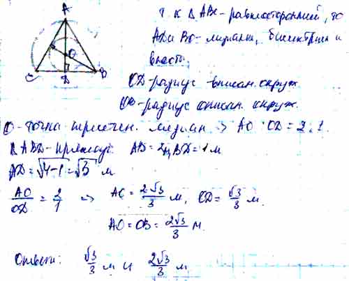 Для того чтобы дать полноценный ответ, был привлечен специалист, который хорошо разбирается требуемой тематике "ЕГЭ (школьный)". Ваш вопрос звучал следующим образом: Найдите радиусы вписанной и описанной окружностей равностороннего треугольника со стороной 2 м.