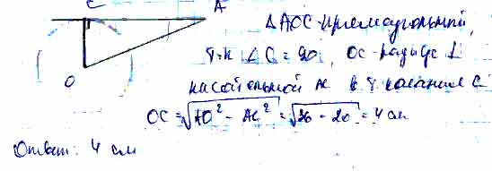 Для того чтобы дать полноценный ответ, был привлечен специалист, который хорошо разбирается требуемой тематике "ЕГЭ (школьный)". Ваш вопрос звучал следующим образом: К окружности с центром О проведена касательная АС (С — точка касания). Найдите радиус окружности, если ОА = 6 см, АС = 2√5 см.