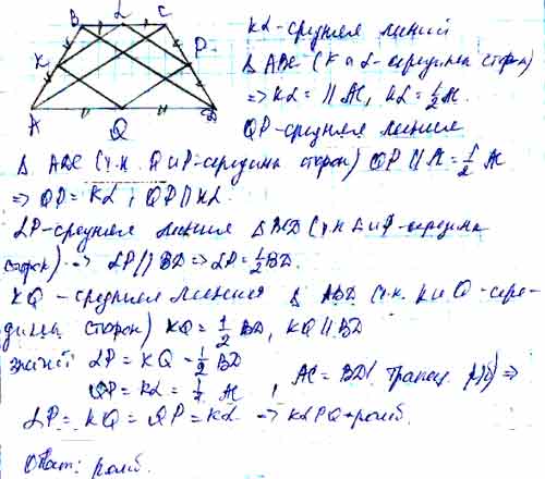 Для того чтобы дать полноценный ответ, был привлечен специалист, который хорошо разбирается требуемой тематике "ЕГЭ (школьный)". Ваш вопрос звучал следующим образом: Середины сторон равнобедренной трапеции попарно соединены. Определите вид получившегося четырехугольника.