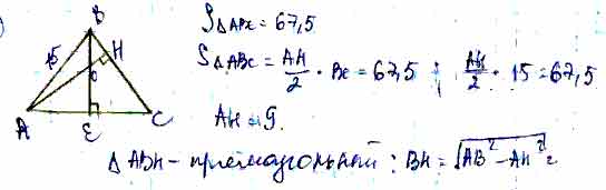 Для того чтобы дать полноценный ответ, был привлечен специалист, который хорошо разбирается требуемой тематике "ЕГЭ (школьный)". Ваш вопрос звучал следующим образом: Боковая сторона равнобедренного треугольника ABC равна 15, а его площадь равна 67,5. Проведены высоты BE и АН", пересекающиеся в точке О. Найдите площадь треугольника ВОН.
