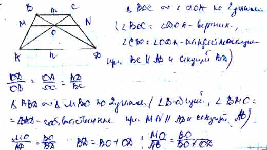 Для того чтобы дать полноценный ответ, был привлечен специалист, который хорошо разбирается требуемой тематике "ЕГЭ (школьный)". Ваш вопрос звучал следующим образом: Длины оснований трапеции m и n. Прямая, проходящая через точку пересечения диагоналей трапеции параллельно основаниям, пересекает боковые стороны в точках М и N. Найдите длину отрезка MN.