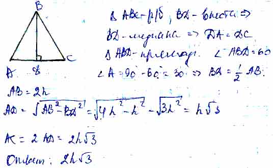 Для того чтобы дать полноценный ответ, был привлечен специалист, который хорошо разбирается требуемой тематике "ЕГЭ (школьный)". Ваш вопрос звучал следующим образом: Найдите площадь равнобедренного треугольника, если высота, проведенная к основанию, равна h, а угол между этой высотой и боковой стороной равен 60°.