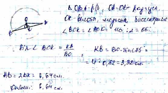Для того чтобы дать полноценный ответ, был привлечен специалист, который хорошо разбирается требуемой тематике "ЕГЭ (школьный)". Ваш вопрос звучал следующим образом: Угол между радиусами ОА и ОВ окружности равен 110°. Чему равна хорда АВ, если радиус окружности равен 4 см?