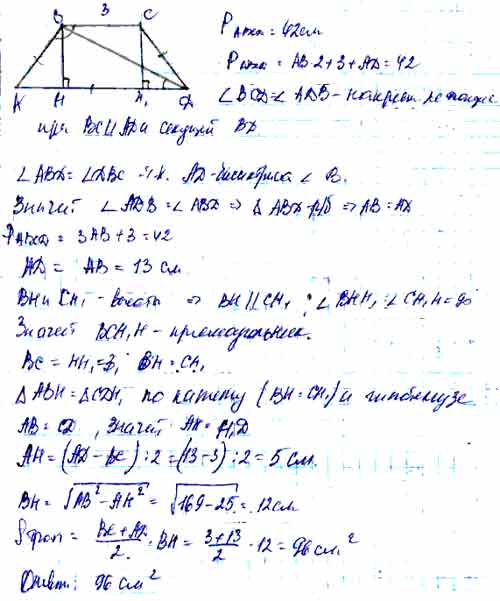 Для того чтобы дать полноценный ответ, был привлечен специалист, который хорошо разбирается требуемой тематике "ЕГЭ (школьный)". Ваш вопрос звучал следующим образом: Диагональ равнобедренной трапеции делит ее тупой угол пополам. Меньшее основание трапеции равно 3 см, периметр равен 42 см. Найдите площадь трапеции.
