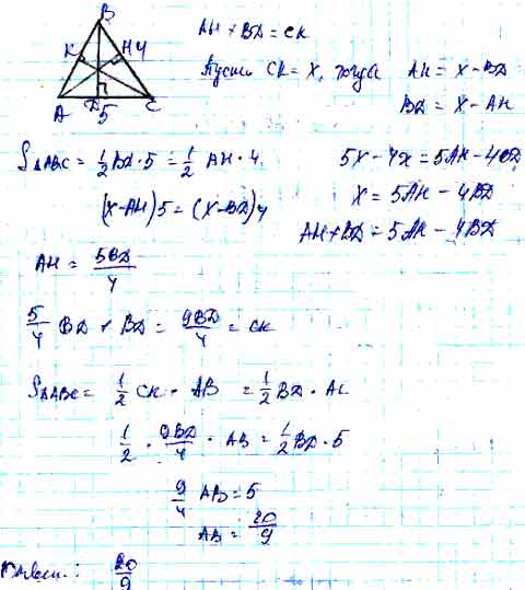 Для того чтобы дать полноценный ответ, был привлечен специалист, который хорошо разбирается требуемой тематике "ЕГЭ (школьный)". Ваш вопрос звучал следующим образом: В треугольнике ABC стороны ВС = 4 и АС = 5, а сумма длин высот, проведенных к этим сторонам, равна третьей высоте. Найдите длину АВ.