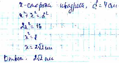 Для того чтобы дать полноценный ответ, был привлечен специалист, который хорошо разбирается требуемой тематике "ЕГЭ (школьный)". Ваш вопрос звучал следующим образом: Найдите сторону квадрата, если его диагональ равна 4 см.