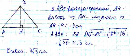 Для того чтобы дать полноценный ответ, был привлечен специалист, который хорошо разбирается требуемой тематике "ЕГЭ (школьный)". Ваш вопрос звучал следующим образом: Найдите высоту равностороннего треугольника, если его сторона равна 8 см.