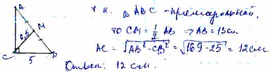 Для того чтобы дать полноценный ответ, был привлечен специалист, который хорошо разбирается требуемой тематике "ЕГЭ (школьный)". Ваш вопрос звучал следующим образом: В прямоугольном треугольнике медиана, проведенная к гипотенузе, равна 6,5 см, длина одного катета — 5 см. Найдите длину другого катета.