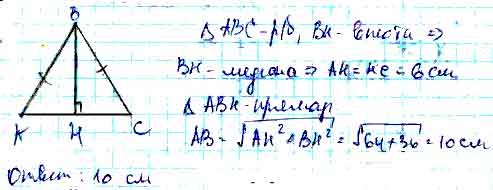 Для того чтобы дать полноценный ответ, был привлечен специалист, который хорошо разбирается требуемой тематике "ЕГЭ (школьный)". Ваш вопрос звучал следующим образом: Треугольник ABC — равнобедренный с основанием АС. Найдите боковые стороны, если высота ВН равна 8 см, основание 12 см.