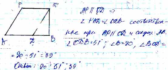 Для того чтобы дать полноценный ответ, был привлечен специалист, который хорошо разбирается требуемой тематике "ЕГЭ (школьный)". Ваш вопрос звучал следующим образом: В трапеции АРОВ ∠A = 51°, ∠B = 90°. Прямая, параллельная стороне АР, проходит через вершину О и точку D на большем основании АВ. Найдите острые углы треугольника ODB.