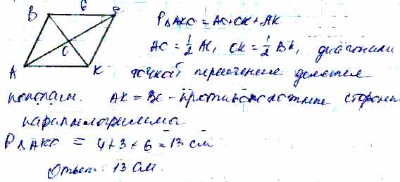 Для того чтобы дать полноценный ответ, был привлечен специалист, который хорошо разбирается требуемой тематике "ЕГЭ (школьный)". Ваш вопрос звучал следующим образом: Диагонали параллелограмма АВСК равны 5 см и 8 см, сторона ВС равна 6 см. Найдите периметр треугольника АКО, где О — точка пересечения диагоналей.