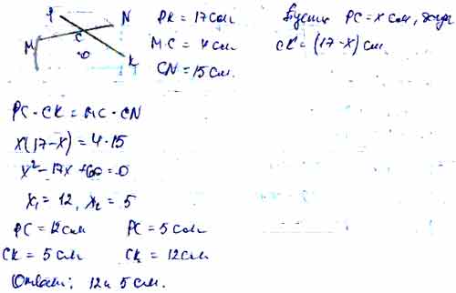 Для того чтобы дать полноценный ответ, был привлечен специалист, который хорошо разбирается требуемой тематике "ЕГЭ (школьный)". Ваш вопрос звучал следующим образом: Две хорды MN и РК пересекаются в точке С. Найдите отрезки СР и СК, если РК = 17 см, МС = 4 см, CN = 15 см.