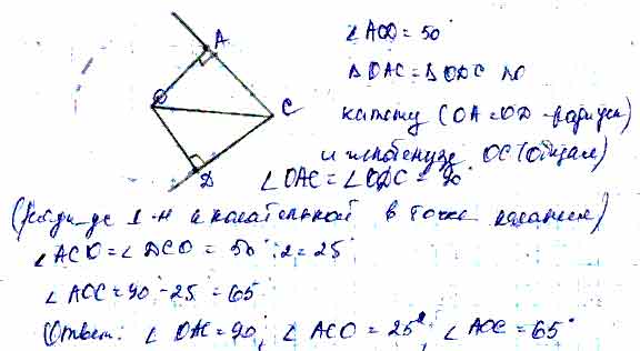 Для того чтобы дать полноценный ответ, был привлечен специалист, который хорошо разбирается требуемой тематике "ЕГЭ (школьный)". Ваш вопрос звучал следующим образом: Из точки С к окружности с центром О проведены касательные СА и CD, А и D — точки касания. Найдите углы треугольника АОС, если ∠ACD = 50°.